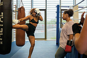 La chaleur écrasante de ce dimanche 13 juillet ne les a pas freinées. Une dizaine de sportives du Pantin Muay Thaï enchaînent échauffement cardio, renforcement musculaire et travail technique au stade Jules-Ladoumègue, situé porte de Pantin. Au cœur de ce summer bootcamp 100 % féminin, Paméla Abena, leur coach : « Le fait de m’être mise au sport, il y a huit ans, m’a transformée physiquement et mentalement. Je trouve qu’il y a encore trop d’obstacles à la pratique sportive des femmes alors j’apporte ma pierre à l’édifice en proposant des créneaux qui leur sont réservés. » Manila Vanisaveth, participante pantinoise, acquiesce : « Je me sens plus à l’aise entre femmes. Il y a moins de rivalités ou d’ego, et plus d’échanges. »