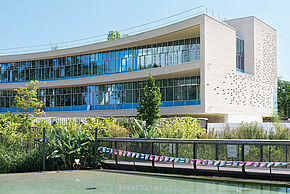 C’est peu dire que ses débuts ont été mouvementés. Suite à la défaillance de quatre entreprises de construction, le chantier a en effet accusé un certain retard. Mais le résultat est là ! « Le bâtiment a été conçu comme des bras grands ouverts sur le parc, avec une façade entièrement vitrée de ce côté, explique Sébastien Costes, architecte ayant repris le dossier. Des moucharabiehs, ces cloisons ajourées inspirées du Maghreb, en brique de béton clair seront ajoutés sur la façade sud, afin de contrôler les apports de lumière. »« Les toits ont été végétalisés pour permettre la rétention de l’eau de pluie, assurer l’isolation thermique du bâtiment en hiver et le rafraîchir en été, mais aussi pour offrir une vue plus esthétique aux habitants des immeubles alentours », complète Abdelillah Hallou, responsable du pôle Maîtrise d’ouvrage de la ville.