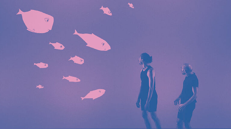 Deux personnages se sont lancés à la quête de ce poisson qui vit dans les arbres.